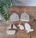 - Beautifully handcrafted wooden printing blocks made from recycled wood. As each block is individually handmade, your designs may vary slightly from those shown – making your set truly unique. Two beach huts, two fish, and two boats which are made up of three individual blocks