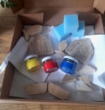 This Seaside themed kit invites you to slow down, get creative, and enjoy meaningful “me time” while printing with our individually handcrafted wooden blocks, each one made from recycled wood.