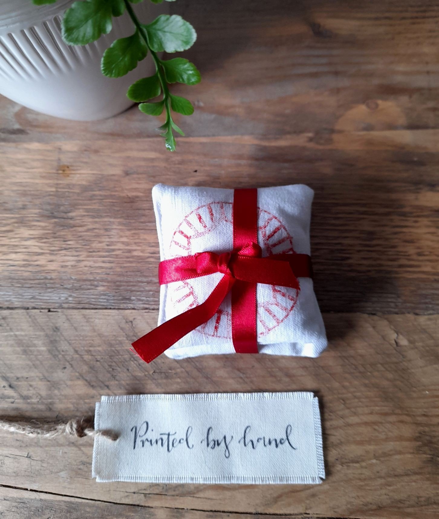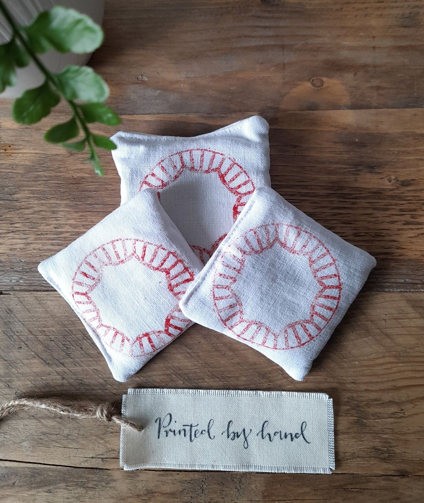 Individually designed, printed by hand and handmade Lavender Bag Bundle in a red geometric design (Three Lavender
