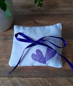 This beautiful handmade Ring Cushion is individually designed and hand-printed, featuring a purple heart